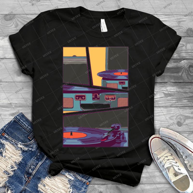 Blue Vinyl Record Player 21 – Vintage Mens Shirt Tshirt For Women Classic Handmade Shirt Retro Graphic Tee