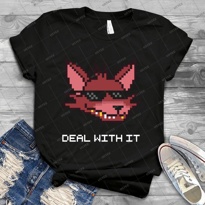 Five Nights At Freddy S-fnaf-foxy-deal With It – White Font – – Vintage Men’s Shirt Tshirt For Women Classic Handmade Shirt Retro Graphic Tee