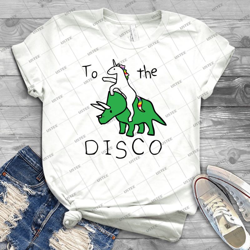 To The Disco – Unicorn Riding Triceratops – 44 – Vintage Men’s Shirt Tshirt For Women Classic Handmade Shirt Retro Graphic Tee